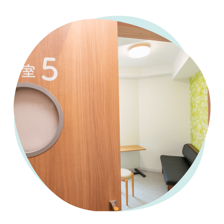 当院の大きな特長のひとつが、完全個室での診療です。受付後すぐに個室へご案内します。