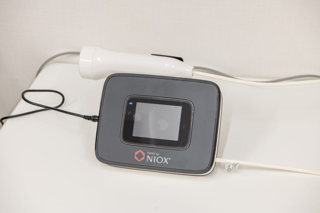 呼気中の一酸化窒素を測定する装置です。通常の検査と比べて負担が少なく、その場ですぐ結果がわかるため、喘息などの診断や治療効果の確認に役立ちます。