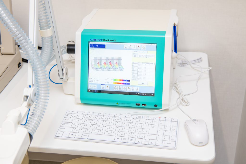 肺機能検査や呼気NO検査に加えて、クリニックでは珍しいモストグラフも導入することで正確な喘息の診断、治療効果の判定に努めています。